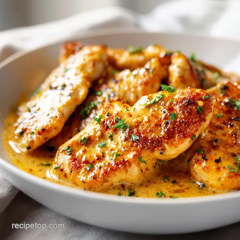 - Flavor/Texture Hook: Golden brown seared chicken in a silky, tangy parmesan cream